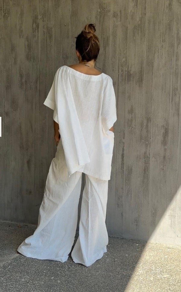 Nuestro Palazzo Kovan, fino y elegante. Confeccionado en lino con expandex, ideal para quienes buscan un estilo sofisticado y fresco. Su talle único y diseño versátil la convierten en la prenda perfecta para cualquier edad y cuerpo. Un basico que no te puede faltar en el ropero