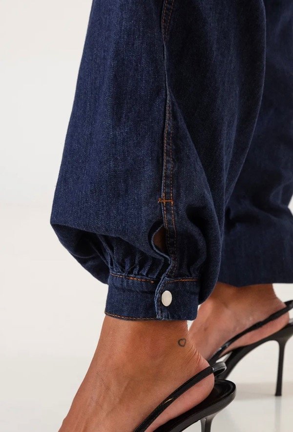 Diseño estilo babucha con botapie con broche metálico en el tobillo que aporta un toque moderno y funcional.
